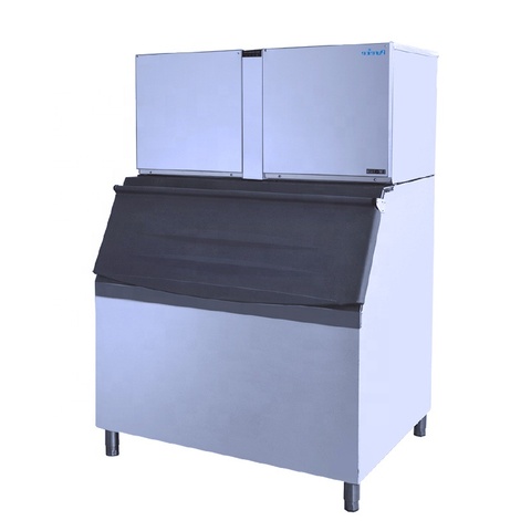 Precio al por mayor 890Kg por día, máquina para hacer cubitos de hielo refrigerada por aire y agua, cuerpo de acero inoxidable para supermercados y restaurantes